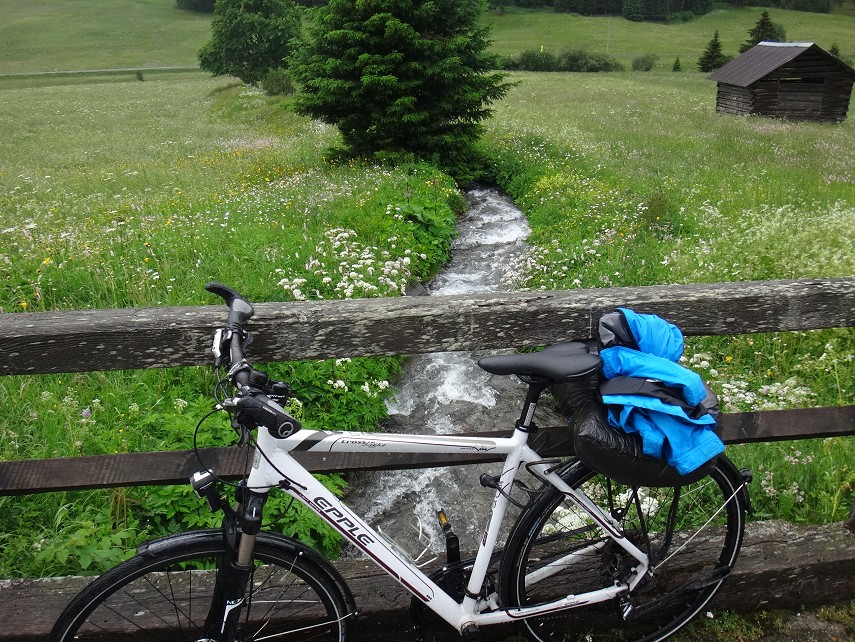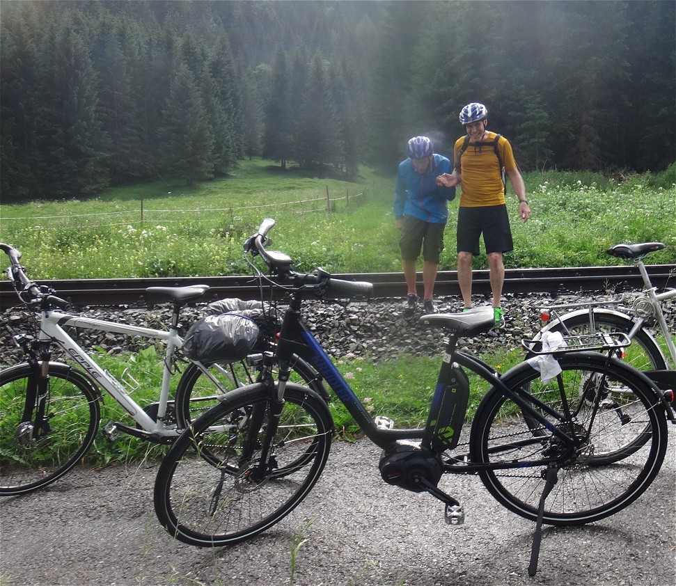 Dort trafen die Radler am Begleitfahrzeug ein, nur wenige Minuten, bevor dann ein Unwetter mit Hagel tobte. Das konnten wir im VW-Bus aussitzen, und kurze Zeit später ging's weiter Richtung Lermoos. Bea übernahm den VW-Bus, ich stieg in die Pedale. Bald kamen sehr steile Steigungen auf uns zu, an denen uns Mathias mit seinem Pedelec natürlich davon zog. Pech nur: er übersah die entscheidende Abzweigung, und so hatten wir uns gleich mal verloren! Nach einer guten halben Stunde fanden wir uns wieder, aber in Zukunft muss das Radlteam beinander bleiben, und wenn jemand mal voraus fährt, muss er an angemessener Stelle auf die anderen warten! Lektion 1, sozusagen. Im weiteren Verlauf erwischte uns dann das 2. Gewitter des Tages ziemlich direkt, und aufgrund einer falschen Weg-Wahl mussten wir dann auch noch die Bahngleise auf offener Strecke queren. Der Akku des Pedelecs kam auf den letzten Steigungen ins Schwächeln (er war heute morgen nur zu 4/5 geladen), aber wir waren ja schon kurz vorm Ziel und erreichten den Grieserhof so gegen halb 5. Bea war schon da, hatte den Check-In organisiert und das Gepäck auf die Zimmer gebracht. So soll's sein! Fazit: Eine gelungene erste Etappe mit einigen unerwarteten "Schmankerln". |