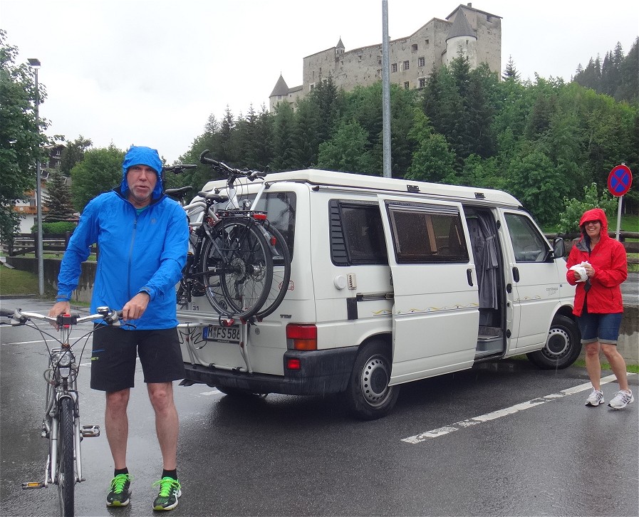 Wetter nach Meran gefahren. Ich im VW-Bus, die anderen per Bike. In Meran