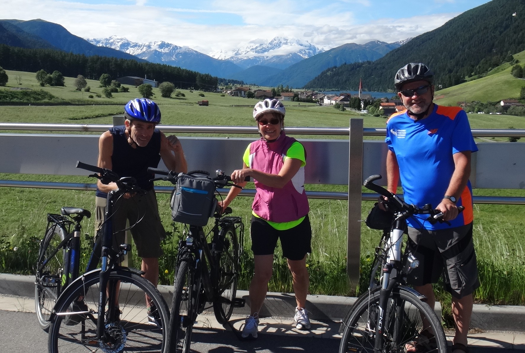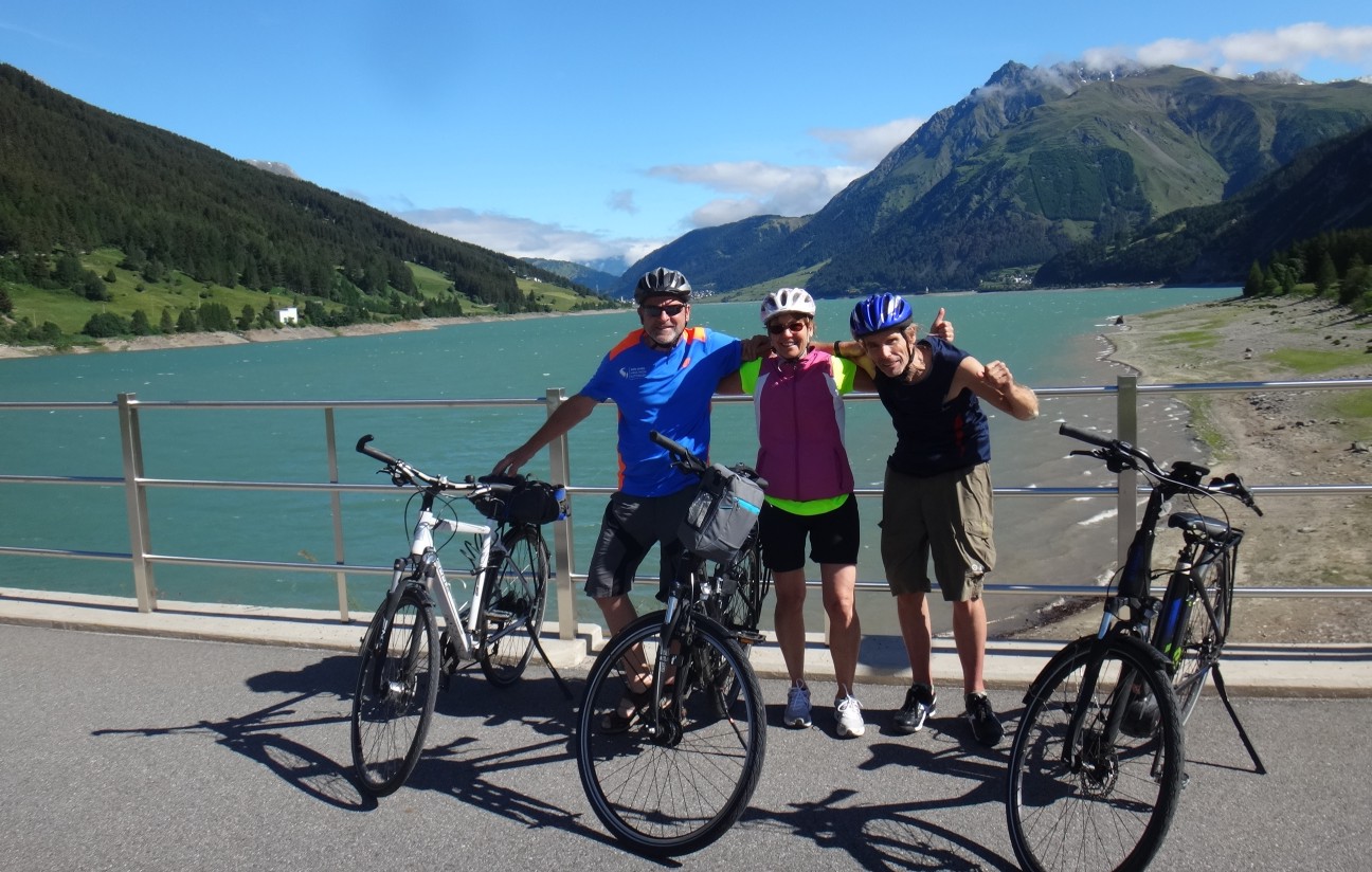 zur Staumauer des Reschensees. Bei traumhaftem Wetter war die Abfahrt von