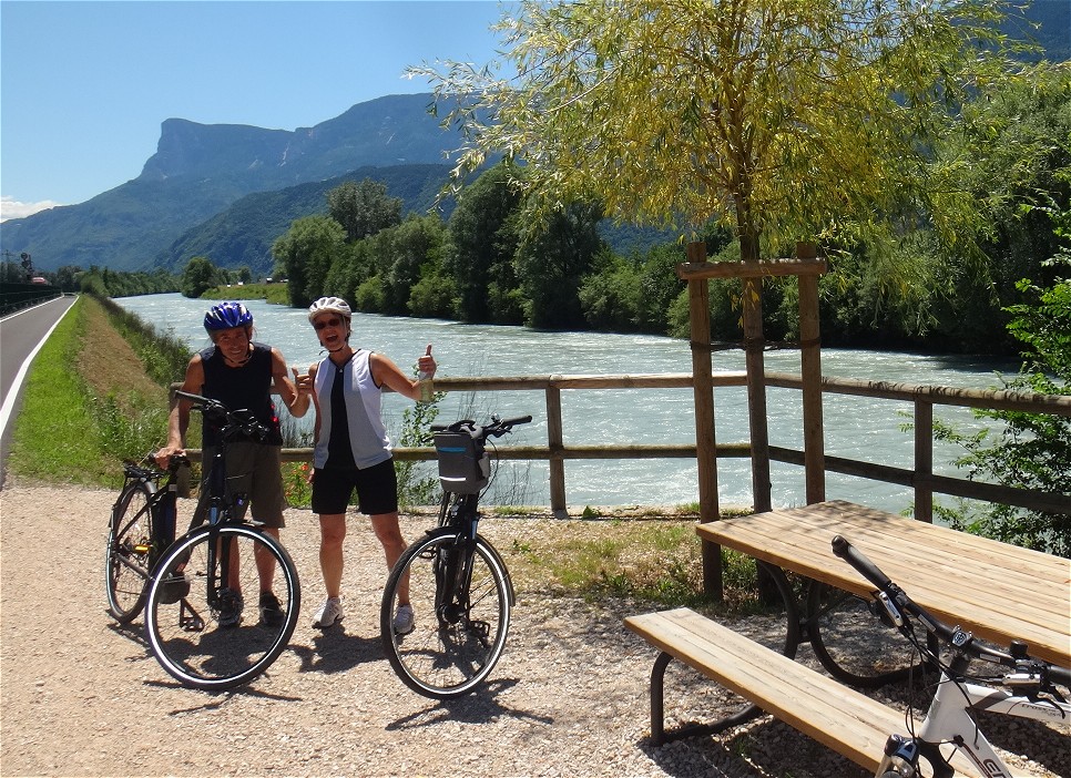während wir auf tollem Radweg an der Etsch entlang weiterradelten. Bei