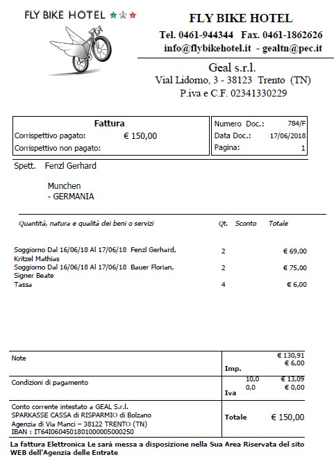 Eine Hotelrechnung hatten wir nicht mehr, aber ich habe eine Bestätigung vom FlyBike-Hotel angefordert, dass wir da waren. Und siehe da: Das FlyBike-Hotel hat superschnell reagiert und mir die Rechnung zugesandt. Ich hab' sie sofort an die "Eintreiber-Organisation" EMO weitergeleitet und bin mal gespannt, was nun passiert. Die EMO (European Municipality Outsourcing) ist übrigens eine gewerbliche Organisation - also eine Firma -, die für etliche italienische Kommunen Bußgelder eintreibt. Die EMO sitzt in Florenz und kommuniziert polyglott in diversen europäischen Sprachen. Interessant ist auch noch das Kürzel "ZTL". Was eine "ZTL" (zona traffico limitato) ist, erklärt recht gut der ÖAMTC. Nun gut, hinterher ist man immer schlauer. Und prinzipiell ist es ja OK, dass man bei einem Verkehrsverstoß erst mal zur Rechenschaft gezogen wird (warum das mehr als ein halbes Jahr dauert, ist eine andere Frage). Wenn der Beschuldigte dann aber eine glaubhafte und durch Dokumente gestützte Erklärung abgibt, könnte man's ja auch mal gut sein lassen! Bevor ich jetzt eine generelle Reisewarnung für Italien ausspreche, möchte ich noch abwarten, was die EMO zu unserer Hotelrechnung sagt. Mehr Nachweise kann ich nicht mehr bringen! |