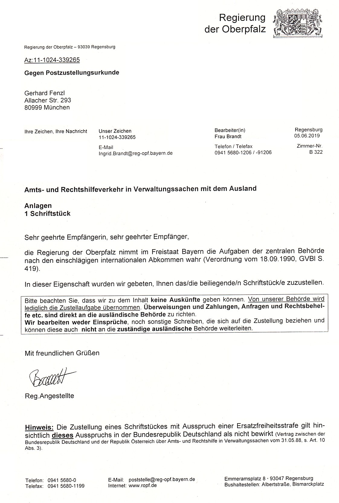 Im nebenan veröffentlichten Schreiben teilt mir die Regierung der Oberpfalz mit, dass sie im Rahmen einschlägiger Abkommen die Zustellung eines Schriftstückes übernommen habe, zum Inhalt aber keinerlei Auskünfte erteilen könne. Jetzt ist also auch die Regierung der Oberpfalz mit im Boot, wegen eines Verkehrsverstoßes von ca. 3 Minuten Länge und eines Streitwerts von 88 €, den ich in mindestens 7 Mails gegenüber der Inkasso-Firma EMO erläutert und zurückgewiesen habe. Na gut! Spielen wir halt weiter mit! Das übermittelte Dokument ist in Deutsch verfasst, aber der evtl. zu erhebende Einspruch muss komplett auf Italienisch verfasst werden. Ob "Google Translate" das leisten kann? Einen Versuch wäre es wert. Für den Einspruch gibt es übrigens 2 Alternativen: Entweder an den zuständigen Präfekten (Prefetto) oder an den Friedensrichter (Giudice di Pace). Im zweiten Fall gäbe es eine Verhandlung mit Anwesenheitspflicht. Wie gesagt, wir reden über eine kleine Ordnungswidrigkeit, die eigentlich gar keine ist, weil wir bereits mehrfach nachgewiesen haben, dass es sich um den Transport eines Behinderten handelte. Es ist unfassbar, dass es seit nunmehr fast 5 Monaten nicht möglich war, diese Sache gütlich zu beenden. |