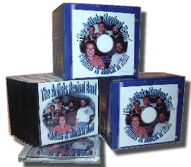 Die Hauptarbeit war bereits Ende Dezember '98 getan: Das Einspielen der Stücke im Hofstetter-Studio in Markt Indersdorf. Doch ein paar Nacharbeiten waren schon noch fällig: So traf man sich noch einige Male im Dachauer Hinterland, um fehlende oder nicht genehme Spuren nachzutragen und das Ganze abzumischen. Schließlich wurde die Reihenfolge der Stücke nochmal umgeschmissen, und dann ging's zum Mastering. Nebenbei kursierten die ersten Cover-Entwürfe, doch das endgültige Design brauchte seine Zeit... Aber im Mai '99 war dann alles fertig! Die erste Auflage der Artists-CD ist gepresst (bzw. gebrannt!), Cover und Labels sind gedruckt, und die spannende Frage war jetzt: Können wir dem Ansturm der Interessenten gerecht werden oder reissen uns die Fans schon bald die letzte Scheibe aus den Händen? Die Erst-Auflage von 100 Stück ist längst vergriffen, aber die CD's werden natürlich je nach Bedarf nachproduziert. |