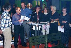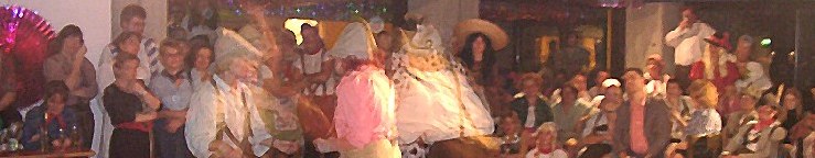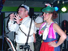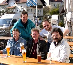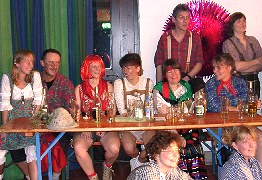 Wir haben auf der Saison-Abschlußfeier des Skiclub Odelzhausen gespielt, und es war - trotz geringerer Besucherzahl als erwartet - ein lustiger und relaxter Abend. Nachdem bei unserer Ankunft um 17:00h am Spielort noch eine Geburtstagsfeier im Gange war, genehmigten wir uns erst mal eine Weißbier-Runde im Biergarten, bevor's dann an's Aufbauen ging. Um halb 8 setzten wir in - zumindest für uns - ungewohnt niedriger Lautstärke zur akustischen Untermalung des "Grossen Fressens" an. Lauter wurde es dann von selber! Und spätestens nach den Siegerehrungen, als der Veranstalter das Feld komplett für uns freigab, ging's dann richtig zur Sache. Der "harte Kern" des SCO hielt sich - wie erwartet - wacker, und so ging das ARB- Programm erst gegen halb 3 Uhr zu Ende - und selbst da gab's noch Diskussionen ... |