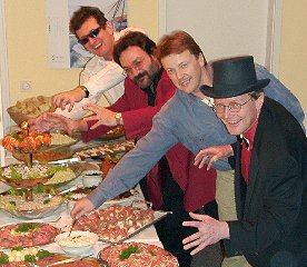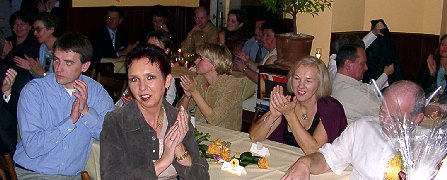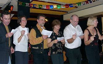 15.11.03, Runder Geburtstag von Lydia im Brückerl Uns hat's sehr viel Spaß gemacht! Nicht nur, weil wir dank etlicher Publikums-Einlagen auch mal Pause hatten, sondern vor allem, weil da eine Festgemeinde versammelt war, die in sich stimmig war, und die auch optimal zu unserem musikalischen Stil passte: Sowas dauert dann schon mal bis halb drei in der Früh ... |
