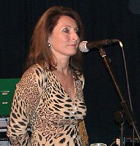 <- Gastgeberin Lydia war die erste, die sich ans Mikrofon begab, um ihre Gäste zu begrüßen. -> |