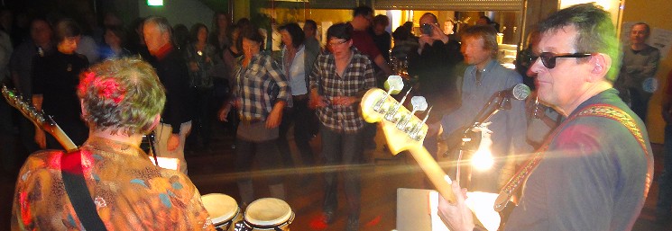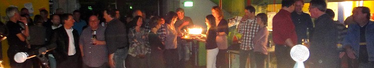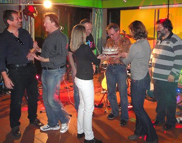 Zu unserem runden Band-Geburtstag hatten wir ja aufgrund der Rückmeldungen schon einen regen Andrang erwartet. Und so wars dann auch: Der vordere Saal war proppenvoll, und die "Sitzplatz-Extension" in den hinteren Saal erwies sich als recht passende Lösung. Wir haben keine Strichliste geführt, schätzen aber, dass heute ca. 120 Leute mit uns gefeiert haben. |