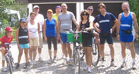 ![]() 09.08.2009 Mit 12 Startern und weiteren 5 Quereinsteigern gabs zwar keinen neuen Teilnehmer-Rekord, aber dafür war der 6. Menzing Bierathlon eine lustige und ungetrübte Veranstal- tung mit der erhofften Badeeinlage am Langwieder See und abendlichem Ausklang bei mir im Garten (dort weitere Grilleinsteiger!) |