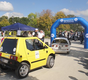 Neben dem offiziellen Fahrerlager in Inning diente uns der Camping- platz Baumann in Buch am Ammersee als Quartier. Unser VW-Camper (leider nicht elektrisch) war dort stationiert, und auch der C-Zero kam hier zum Fertig-Laden an die Steckdose. Unsere Startnummer ist 401 und wir sind stolzes Mitglied des Teams EMFM (Elektro-Mobil-Freunde München). |