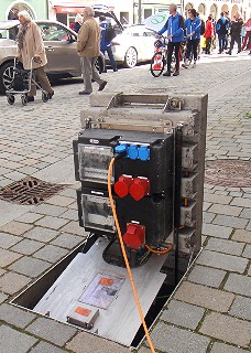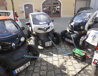 Eins der Highlights gab's für mich schon gleich zu Beginn: Kurz nach der Ankunft im Fahrerlager und Ladepark in Inning konnte ich die Schnell-Ladung mit CHAdeMO ausprobieren: Funktioniert bestens! Und schon nach 11 Minuten war der Akku wieder zu 80% geladen. Die restlichen 20% haben wir dann während der Abend- Veranstaltungen im Inninger Spectacel (Renault-Präsentation und "Fat Toni") ganz konventionell und schön langsam aufgefüllt. Am Campingplatz in Buch war das Laden übrigens nicht ganz problemlos: Alle paar Minuten flog die (10 A) Sicherung im Stromkasten. Vielleicht lag's an meinem (16 A) Ladekabel, vielleicht auch an meinem zu mickrigen CEE-Adapter? |