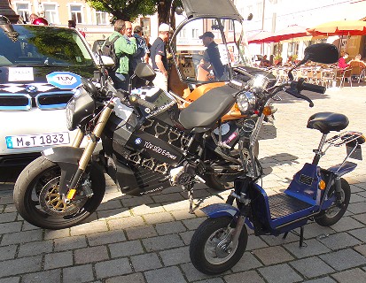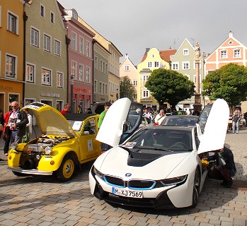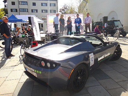Am Start war heute irgendwie deutlich weniger los als gestern und wir kamen auch früher weg. In Weilheim war die ganze Innenstadt für die eRUDA-Fahrzeuge reserviert, und nachdem sich die letzten Nebelreste verzogen hatten, wurde es richtig warm. In Starnberg hatten wir für unseren C-Zero dann den besten Platz von allen vier eMOBIL-Veranstaltungen: Direkt am Kirchplatz, gegenüber der Bühne. Auch hier spät-sommerliche Stimmung. Fast wollte man gar nicht mehr weiter fahren! |
