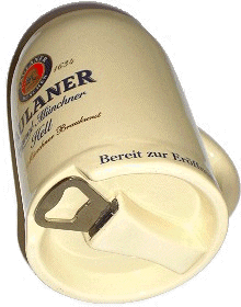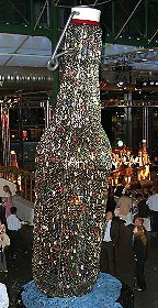 Ich möchte an Bernie's letzten Weihnachtsgruß anknüpfen und euch einen ersten Neujahrsgruß schicken mit einem ähnlich imposanten Gebilde, wie es der Bierflaschen-Christbaum war: Inmitten unserer Stadt gibt es eine fast 7 Meter hohe Skulptur, bestehend aus mehr als 7500 Siebzehnern! Das Objekt nennt sich "Ungezählt", steht seit Juni 2008 in der Schrannenhalle und soll nach dem Willen der Hacker-Pschorr-Brauerei das Ende aller Kapselheber ("„Pfiat di, Flaschenöffner!“) und die Renaissance des traditionellen Bügelverschlusses dokumentieren. Ich bin am 5.1. zufällig auf das Kunstwerk gestoßen und muss wohl noch einen weiteren Ortstermin in der Schranne anberaumen, um rauszukriegen, ob das Objekt potentiell was für meine 17er- Sammlung hergeben würde ... |