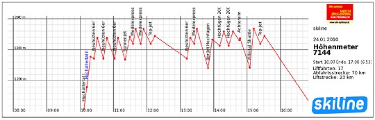 Nette Begleiterscheinung: Auch Kaddi und Paul waren am Samstag in Hochfügen/Hochzillertal unterwegs. Wir trafen uns - noch vor der verabredeten Mittagspause - zufällig am Lift und legten ab dann alle Pistenkilometer gemeinsam zurück. Apropos Pistenkilometer: Da gabs für mich als Berichterstattungs-Freak eine interessante Neuheit: Am Ende eines Skitags kann man sich die gesamte Statistik (Höhenmeter, Lifte, Timing, Pisten-km) im Internet anschauen - basierend auf der Skipass-Nummer. Da wir am Sonntag vergessen hatten, unsere Skipässe beim Pfand-Automaten zurückzugeben (2,- EUR), war ich in der glücklichen Lage, mir bei skiline unsere Statistik für den Sonntag zu holen.