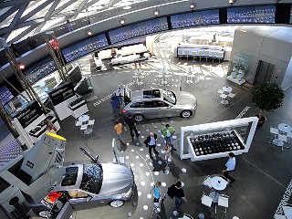 Die BMW-Welt war für mich als Bauwerk an sich interessant. Bin bisher nämlich noch nie drin gewesen! Schon recht beeindruckend, aber eine Spur von Größenwahn lässt sich wohl nicht leugnen ... Die Zweirad-Aktivitäten fanden draußen vor der Türe statt.