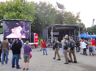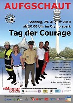 "Aufgschaut" -und aufgschpuit wurde am letzten August-Sonntag im Olympiapark. Letzteres u.a. von der Band Meilen_stein. Beim Tag der Courage boten die Münchner Polizei und die Bün- dnispartner der "Münchner Courage" ab 10:00h ein gemischtes Programm zum Thema Zivilcourage. Meilen_stein spielte mittags und dann noch mal ab 19:00h auf der Bühne am Coubertinplatz. Leider war der 2. Meilen_stein-Auftritt stark durch allgemeine Aufräumarbeiten beeinträchtigt. Diesbezügliches Highlight: Die Polizisten trugen die Absperrgitter direkt vor der Bühne vorbei, an einem davon war noch das Radl eines Meilen_stein-Musikers angesperrt ... |