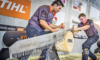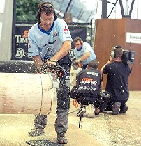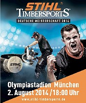 Am Samstag ging's dann nach einem sehr gelungenen Mittagessen mit Claudia und Mandi im Garten der Nymphenburger Schwaige ins Oly-Gelände. Unsere dort geplante Zeltdachtour mit Abseilen wurde zwar wegen Gewitters abgesagt, aber wir hatten ja noch einen zweiten Olypark-Joker: Die Timbersports-Series im Olympiastadion. Hier wurde heute unter 10 Finalisten der Deutsche Holzfäller-Meister (wenn man das so sagen kann) gekürt. Im Detail ging es darum, sich in 6 Disziplinen gegen die Mitbewerber zu behaupten. Obwohl diese Sportart nicht unbedingt zu unseren angestammten Favoriten zählt (wir sind auch nur reingegangen, weil ich Freikarten gewonnen hatte), waren es doch vergnügliche und interessante 3 Stunden: Es ist schon enorm, auf welchen Gebieten man Höchstleistungen erzielen kann. Das Finish war dann auch denkbar spannend, es ging sozusagen in die "Verlängerung", und im Stechen mit der "Stock Saw" besiegte dann der langjährige Deutsche Meister Dirk Braun seinen Kontrahenten Danny Mahr ganz knapp.
