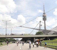 "Ring frei für Radler" hieß es dann am Sonntag, und das wollten wir uns nicht entgehen lassen. Schließlich wurde im Rahmen der 25. BR Radltour erstmals ein Teil des Mittleren Rings komplett für den Autoverkehr gesperrt, um 1200 Teilnehmern der BR Radltour und danach weiteren ca. 5000 Münchner Radlern ungehinderten Radlspaß zwischen Candidplatz und Olympiagelände zu ermöglichen.