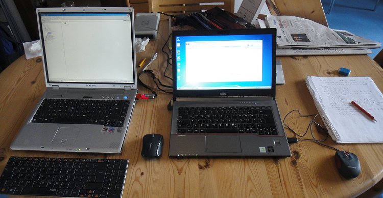 Viele Monate lang hatte ich den Umstieg auf ein neues Notebook vor mir her geschoben, denn ich wusste: Bis auf dem neuen Teil wieder alles funktioniert, das dauert TAGE oder WOCHEN! Und so hatte ich ein schickes Fujitsu Lifebook lange hier liegen, ohne es zu nutzen. Aber jetzt ging es einfach nicht mehr: Das alte Notebook schnaubte bei jedem Einsatz, der Lüfter lief auf Hochtouren, und an manchen Stellen wurde das Gehäuse so heiß, dass man es besser nur mehr mit Handschuhen anfasste.