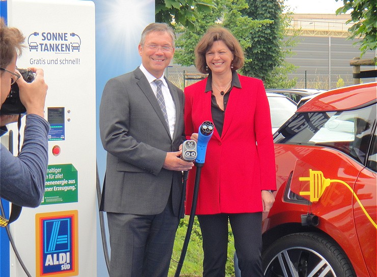 Staatsministerin Aigner eröffnet Schnellladesäule bei Aldi in Allach