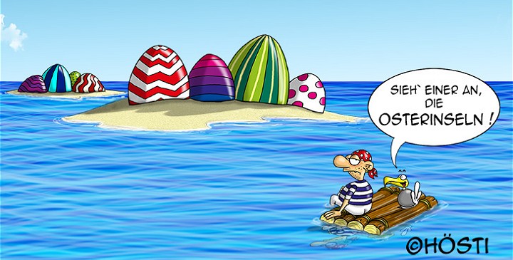 Hösti ist einer der ganz wenigen Karikaturisten, der es nach Absprache erlaubt, seine Cartoons kostenfrei auch auf privaten Homepages zu verwenden. Die meisten seiner Kollegen haben bei jedem neuen Cartoon, den sie veröffentlichen, schon den Abmahn-Anwalt in Lauerstellung! Deshalb hier ein Plädoyer für Hösti und seine Cartoons, ganz speziell natürlich momentan für die zu Ostern! |