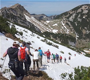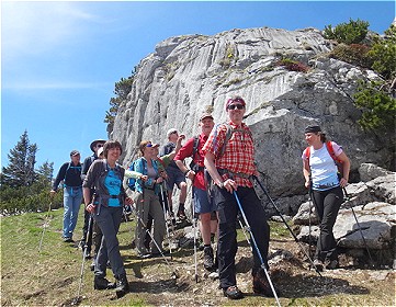 Bei strahlendem Wetter ging's heute auf die Auerspitze im Mangfallgebirge. Mit 13 Teilnehmern waren wir eine recht große Gruppe und dominierten so das Geschehen an unseren jeweiligen Rastplätzen. 1000 Höhenmeter waren's immerhin bis zum Gipfel, also keine ganz kleine Tour.