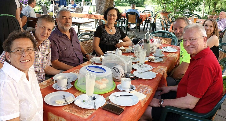 Carmen hatte ja schon Mitte Juni ihren runden Geburtstag, und seither ist sie in einem wahren Feier-Marathon, um die verschiedensten Gruppen individuell zu "bedienen". Unsere Windsurf-Clique war am 9.7. dran! Der Landgasthof Birnthaler in Kallmünz erwies sich als idealer Treffpunkt für den Kaffeeklatsch und das Abendessen (für Schnecki und mich dann auch zum Übernachten im VW-Bus und zum Frühstücken am Sonntag Morgen).