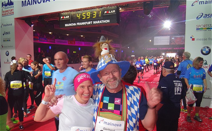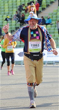 Es war ein Bilderbuch-Herbstmarathon, und wider Erwarten hab' ich's auch ins Ziel geschafft. Sogar deutllich unter 5 Stunden, und nur 14 Sekunden hinter Schnecki! Andreas haben wir nur vor dem Start gesehen, er war ja um Klassen schneller.