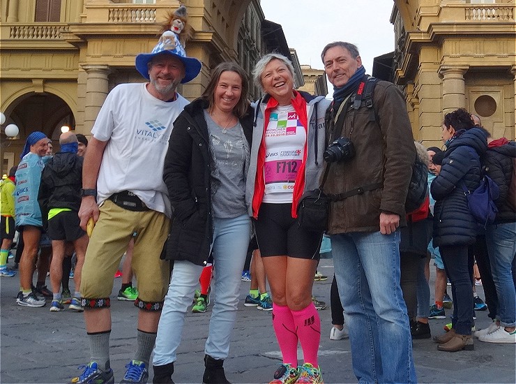 (27.11.) Kaddi und Paul sind ja schon seit letzten Donnerstag in Firenze, Schnecki und ich kamen gestern früh hier an. Heute war unser großer Tag: Der Florenz-Marathon stieg bei optimalen Bedingungen: Trocken, fast windstill, nicht zu sonnig und nicht zu warm. Kaddi und ich absolvierten die verschlungenen 42,2 km, Schnecki und Paul unterstützten uns als Fans bei km 19, 21 und 37, und natürlich an Start und Ziel. Unsere offiziellen Ergebnisse sind: Fusl: 4:51:47 und Kaddi: 5:21:09.