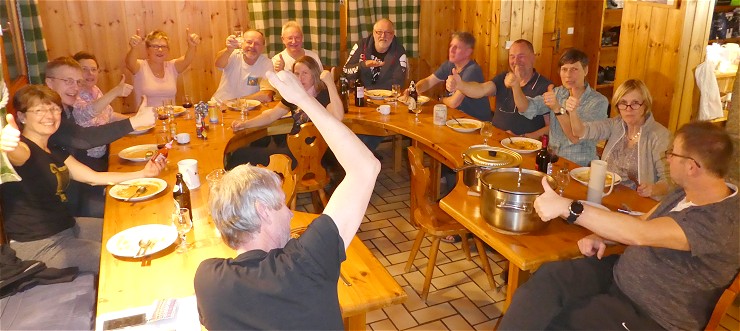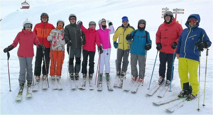 Mit 15 Leuten waren wir heuer wieder in Frankreich beim Skifahren. Die Woche war durchwachsen: Die ersten 3 Tage waren super, dann konnten wir einen Tag wetterbedingt gar nicht skifahren. Die letzten beiden Tage waren wieder OK, wenn auch nicht ganz optimal. Die Stimmung in der Gruppe war aber wieder super, und wir sitzen gerade noch an unserem letzten Abend beinander und stoßen "auf an scheena Urlaub" an!