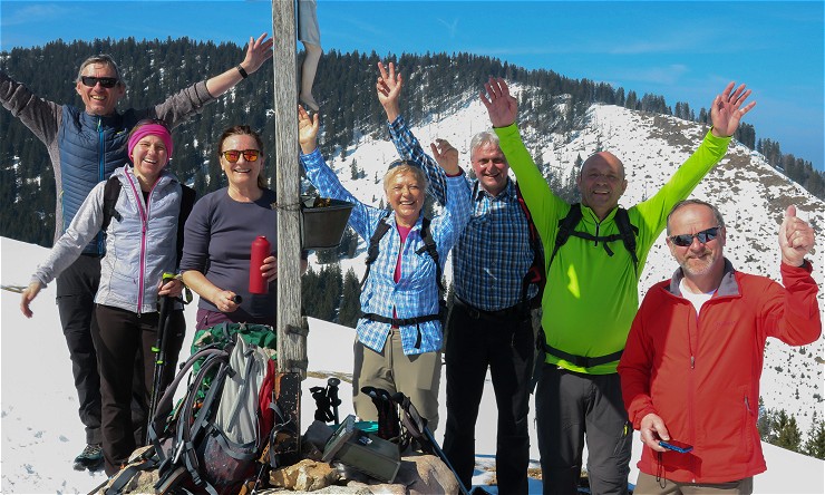 Mit 7 Teilnehmern erklommen wir heute den Laubenstein (1350m) oberhalb von Frasdorf. Bei tollem Wetter war es der früheste Saison-Auftakt der BSIG bisher. Wir hatten noch mit viel Schnee zu tun, es gab aber nirgends ein Problem.