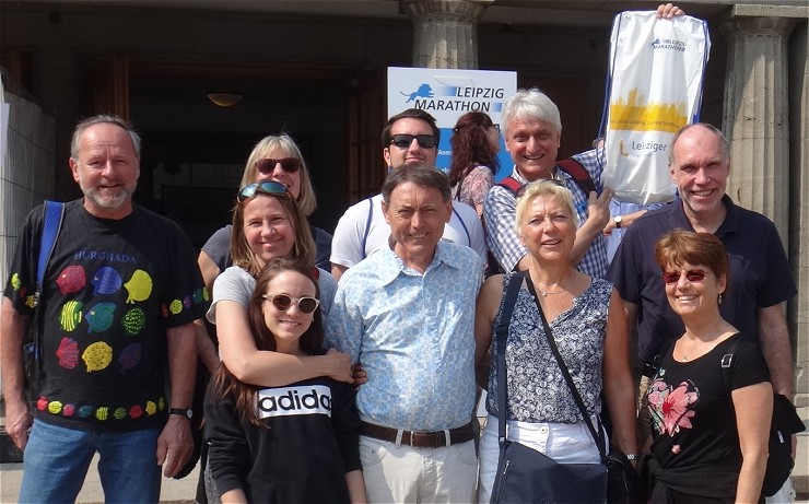 Gestern sind wir mit insgesamt 11 Leuten in 5 verschiedenen Gruppen nach Leipzig gefahren. Hier sind wir auf 4 verschiedene Quartiere verteilt. Erst am Abend gab's dann ein Gesamttreffen, immerhin klassisch in Auerbachs Keller. Heute haben wir auf der Marathonmesse unsere Unterlagen abgeholt, die Anzahl aktiver Läufer hat sich aber auf 6 reduziert (5x Halbmarathon, 1x 10km, 5 Fans an der Strecke). Das Leipziger Zentrum ist ja klein, und so lief uns heute auch Elfi noch zufällig über den Weg. Weitere Berichte zu unserem Leipzig-Wochenende gibt's auch auf meiner Leipzig-Seite. |