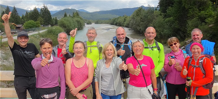 BSIG-Übernachtungstour Soiernhaus Trotz schlechter Wetterprognose fanden sich am Samstag um 12 Uhr 13 BSIG-Teilnehmer am Wanderparkplatz in Krün ein. Und wir kamen nach gut 2 Stunden Aufstieg auch trocken auf der Fischbachalm an. Die weitere gute Stunde auf dem Lakaien- steig geriet dann zunehmend feuchter bzw. nässer, aber wir erreichten das Soiernhaus problemlos. Am nächsten Morgen nach dem Frühstück war dann die große Frage: Überschreitung der Schöttelkarspitze oder schnörkelloser Abstieg? Die Mehrheit entschied sich für Letzteres, das Wetter war einfach nicht gut genug. Trotzdem war's eine sehr lustige Hüttentour.