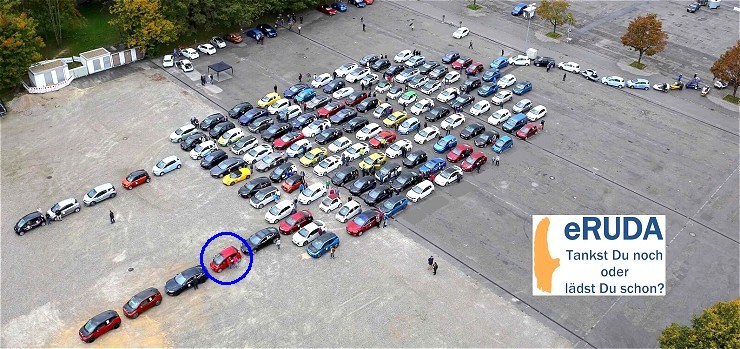 Die eRUDA (elektrisch Rund Um Den Ammersee) fand heuer zum 6. Mal statt - und wir waren zum 5. Mal dabei! Ausgangsort war diesmal Weilheim, also schon mal 50 km Anfahrt. Dann 2x 40 km nach Landsberg und zurück. Und abends noch nach Pähl und wieder zurück. Am Samstag verbuchten wir 174 km. Am Sonntag ging's dann nach Greiling bei Bad Tölz, und über Gauting zurück nach München. Insgesamt 300 km. Na und?, werden jetzt viele Verbrenner-Fahrer sagen. Was ist das Besondere daran? Das Besondere ist, dass 260 Elektro- fahrzeuge lautlos und lokal emissionsfrei diese Tour absolviert haben (einige davon haben weitere Challenges bis hinauf zum Rettenbachferner gemeistert!). Und wir haben wieder mal gesehen, dass man auch mit einem fast 7 Jahre alten reinen Stadtauto so eine Tour machen kann. Problemlos! Mein persönliches Highlight war am Sonntag der Mittags-Stop am Sportflugplatz Greiling bei Bad Tölz: Unglaublich, was da so alles - rein elektrisch angetrieben - in die Luft geht: Vom respektablen Kleinflugzeug über Motorsegler, Ultra-Lights, eDrachen bis hin zum Tandem-Gleitschirm. Eine tolle Präsentation der Möglichkeiten!