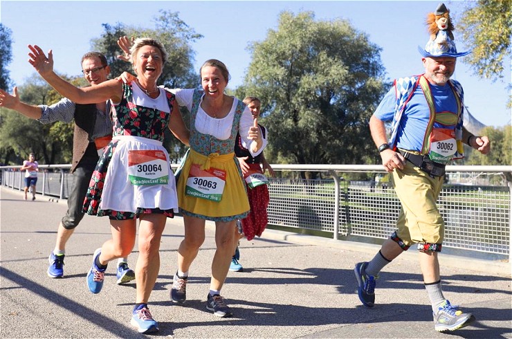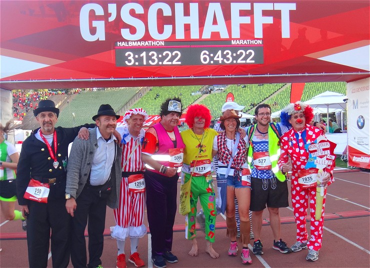 Das Wetter am Münchner Marathon-Wochenende war traumhaft! Und wir waren schon am Samstag mit 5 Aktiven und 2 Fans beim Trachtenlauf dabei. Am Sonntag war der STM dann mit einem aktiven Marathoni (Flori, 4:13) und 34 Helfern unterwegs. 2 der Helfer, nämlich Jakob und ich, wechselten dann auch noch in's Lager der Aktiven. Allerdings nur als Radler: Wir begleiteten das Spenden-Sammler-Team um "Pumuckl" auf der Marathonstrecke. Eine tolle Erfahrung!