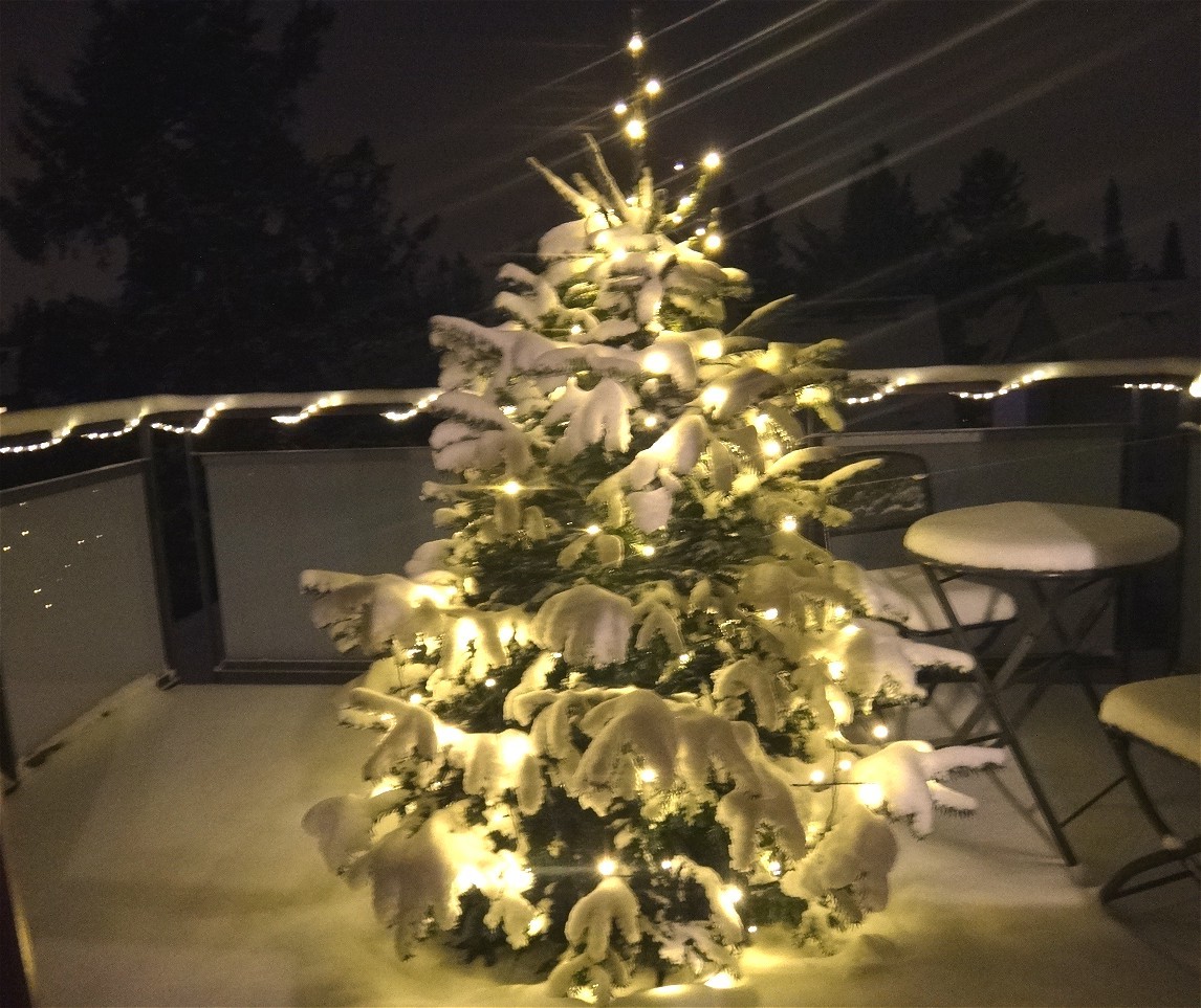 Erst heute gab's etwas Schnee, so dass der Christbaum auf meinem Balkon nun nachträglich doch noch etwas Weihnachts- Feeling vermittelt. Ich lass' ihn deshalb noch ein paar Tage länger stehen als geplant. Man ist ja flexibel ... |