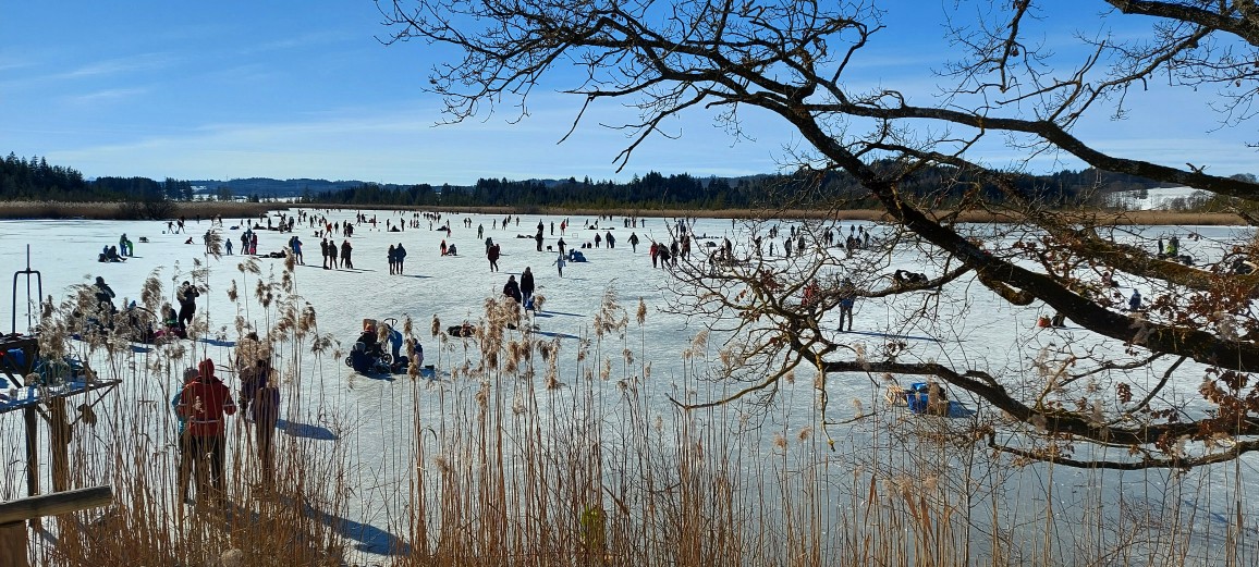 Heute hat's uns bei perfektem Winterwetter auch mal wieder rausgetrieben: Nicht zum 50. Mal um die Blutenburg rum, sondern irgendwo anders hin! Wir sind von Starnberg aus durch die Maisinger Schlucht gewandert und haben dann am Maisinger See eine Glühweinpause gemacht. Dort war die Hölle los! (siehe Foto). Der Rückweg war dann wieder beschaulicher, mit etwas Alpenblick, und am Schluss gab's auch noch einen kurzen Walk über die Starnberger Seepromenade. |