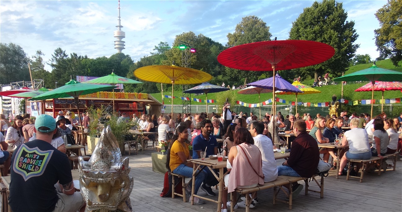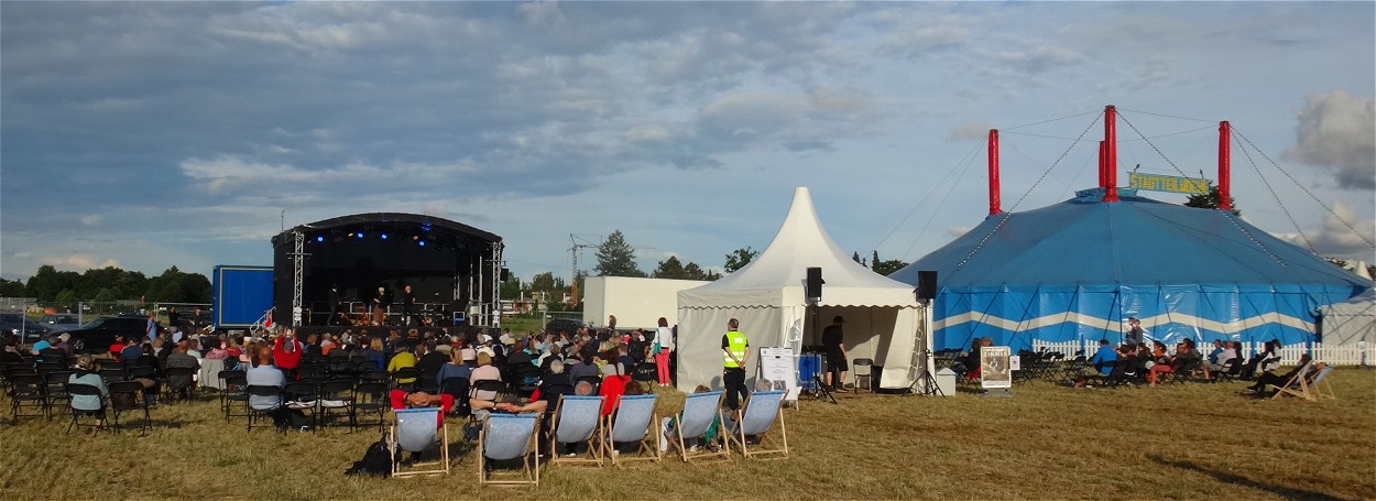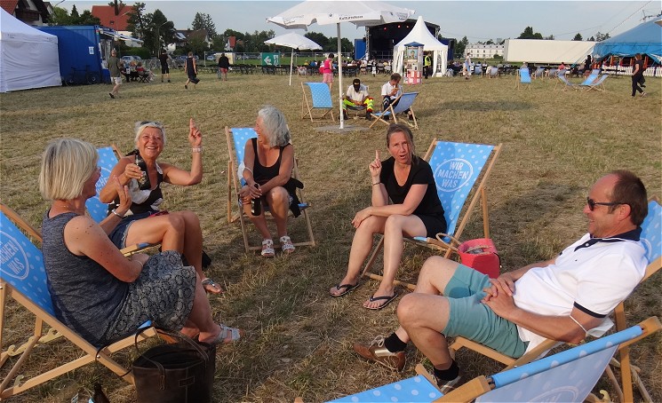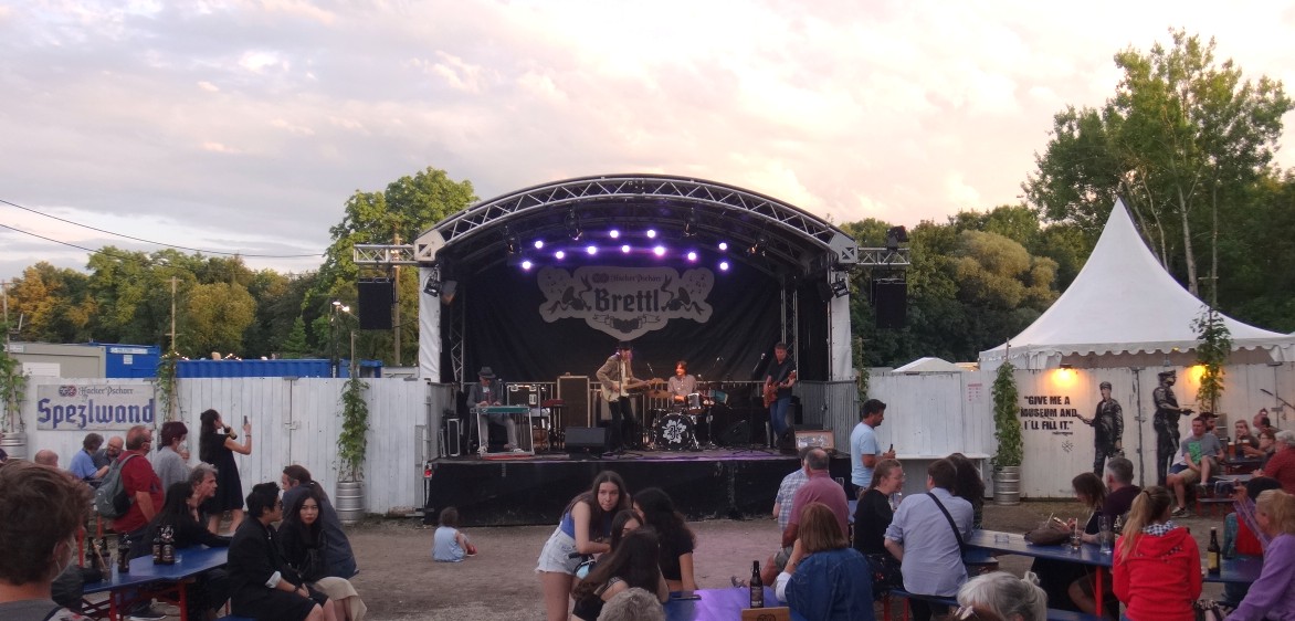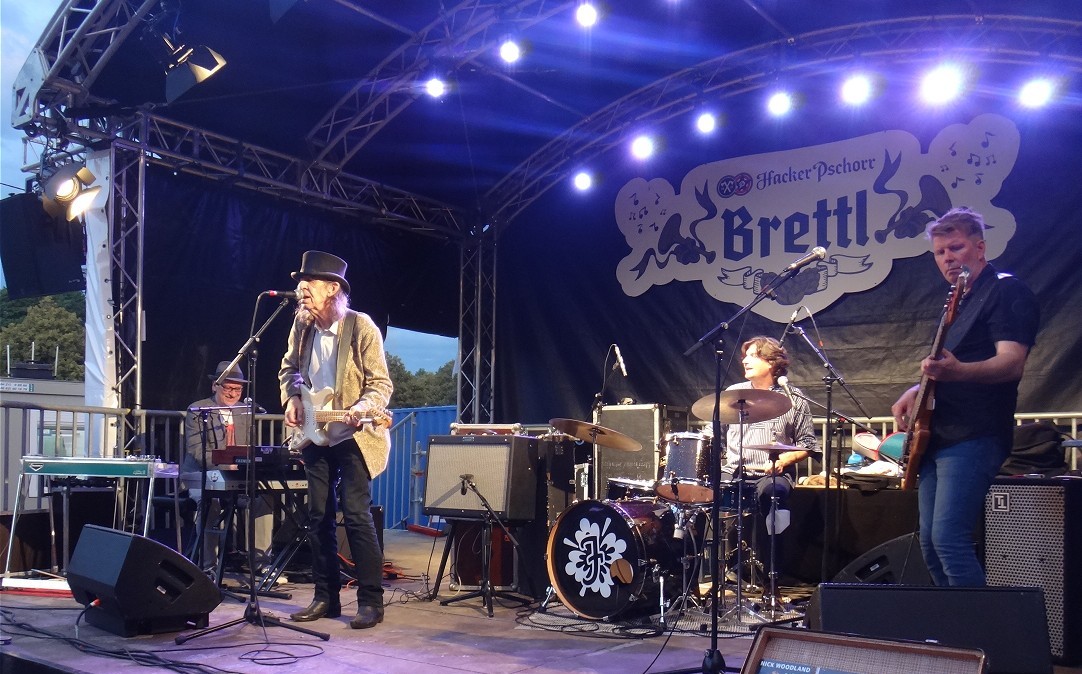 Ob das traditionelle Sommer-Festival heuer überhaupt stattfinden kann, war lange Zeit völlig unklar. Aber: Es steigt! Zwar in stark reduzierter Form (keine Zelte, keine Groß-Events!), dafür aber mit verlängertem Zeitrahmen: Bis 22. August ist dort was los! Trotz eines Hinweises von Freunden "Da braucht ihr gar nicht hingehen, tote Hose!" sind wir heute hingeradelt. Und was wir vorfanden, war alles andere als tote Hose: Erst mal eine veritable Schlange am Einlass (aber gut organisiert), drinnen dann eine angenehme Gästezahl. Sehr entspannt, nicht das übliche Geschiebe. Am Food-Court alles (fast) wie immer, und dann im Hacker-Brettl-Biergarten ein überraschender Gig des legendären Rock- und Blues-Gitarristen Nick Woodland mit seiner Band. Trotz so mancher Unkenrufe: Uns hat's super gefallen!