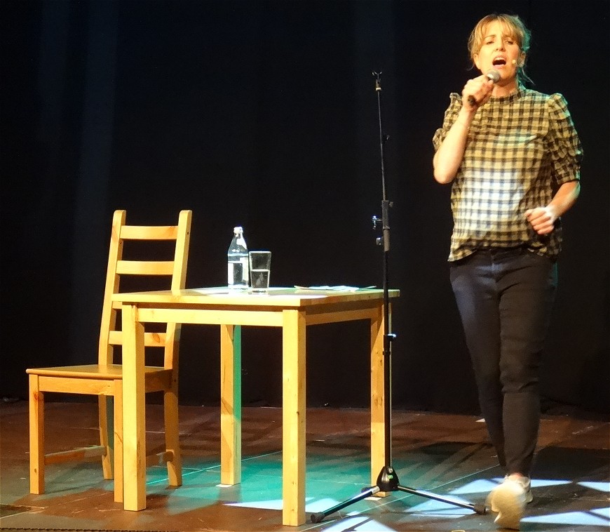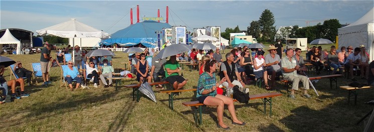 Den Abschluss des Festivals gestaltete dann Nora "Nörle" Boeckler mit einer witzigen Abrechnung über so manche Gepflogenheiten und Abartigkeiten in unserer Gesellschaft. Zwischendurch trommelte der Regen so stark aufs Zeltdach, dass der Mann am Mischpult aufdrehen musste. Aber: das Publikum blieb trocken!