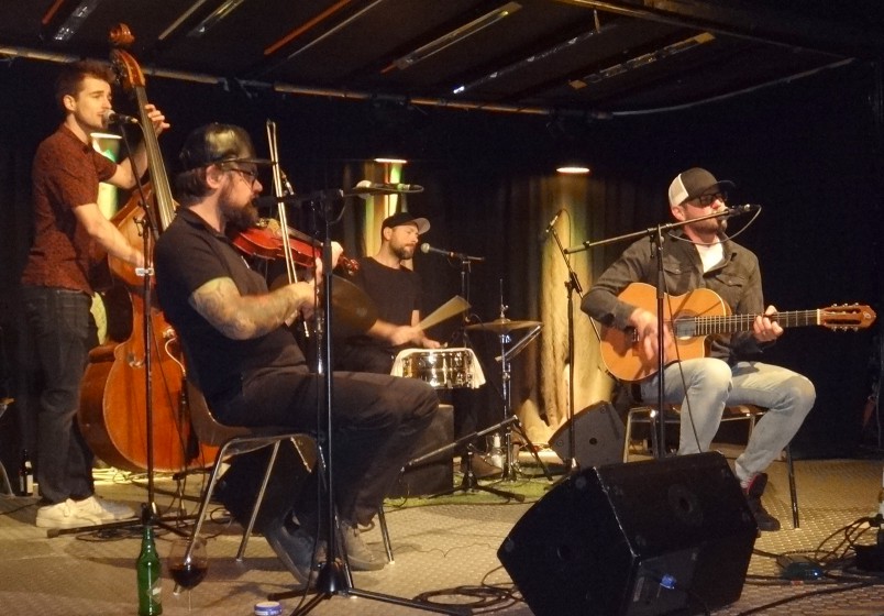 Heute waren wir sehr spontan am vorletzten Abend des Stockwerk-Sommers bei Django 3000 dabei. Und es war der Hammer, was die 4 Burschen da musikalisch abziehen! Kaum jemanden hielt es auf den Sitzen, am Ende war's eh' wurscht: Das Tanzvolk tobte sich vor der Bühne aus - und wir waren auch dabei! Musikalisch sind die 4 "Chiemgau-Balkan-Gypsy-Rocker" ein Vulkan! Ihren Gassenhauer Hey Heidi hauten sie heute schon als 3. Stück raus. Danach flachte es aber keineswegs ab. Im Gegenteil! Und dazu kamen auch noch lustige G'schichten aus Indien und anderen fernen Ländern, in denen sie schon aufgetreten sind, und in denen sie was trinken mussten ... Phänomenal: Der "Geiger" (er kann auch Gitarre) |
