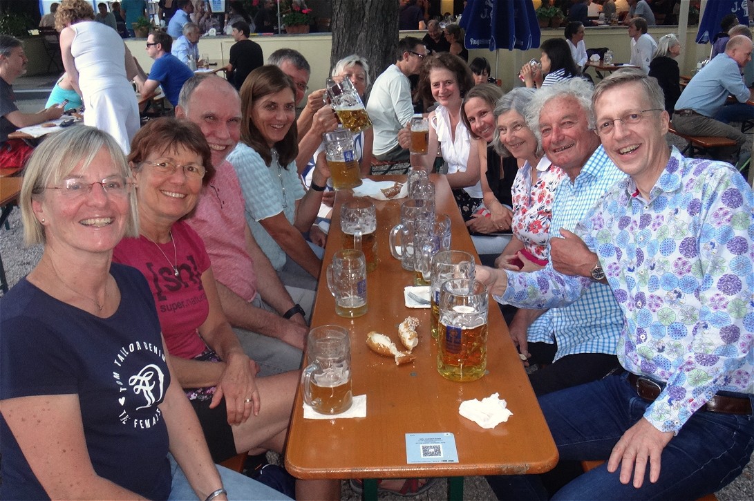 Mittags saßen wir mit der Family im Garten unterm Walnussbaum. Abends ging's dann in den Biergarten "Zum Grünen Baum" nach Obermenzing. Dort fand sich ein Trüppchen von ca. 12 Fusl-Fans ein. Klar: Es war ja Freibier angesagt! Nein: îch hab' mich über jeden gefreut, der (zum Teil recht spontan) gekommen ist, und wir hatten einen sehr vergnüglichen Biergarten-Abend. Und ich hab' - dank Klausi und meiner Schwester - wieder ein paar sehr originelle 17er mehr! Neben dem (unrunden) Geburtstag hat das Datum für mich eine besondere Bedeutung: Mit 63 bin ich nun nicht mehr nur Privatier (wie seit 8 Jahren), sondern RENTNER! Also zurück in der Gesellschaft! Das hat schon was! Vielen Dank auch an alle, die mir telefonisch oder per eMail gratuliert haben!