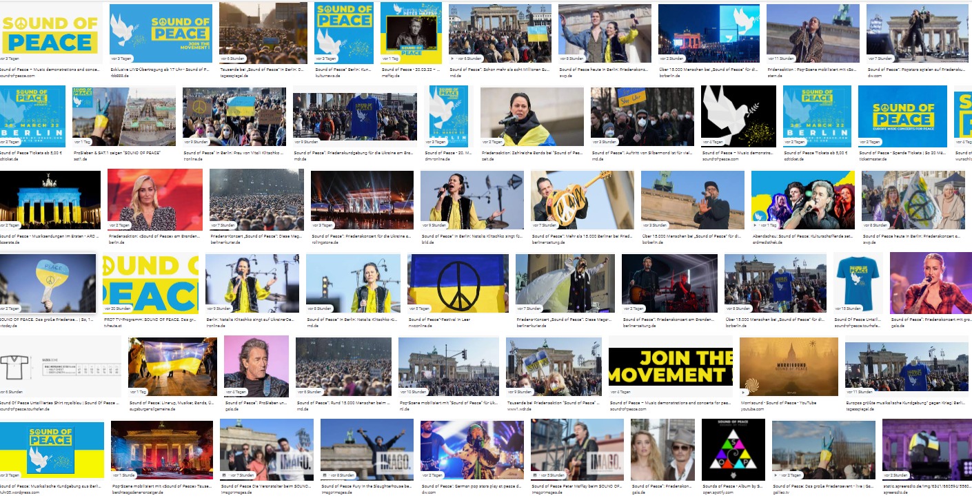 Mir war das Event gar nicht bekannt gewesen, ich hab' nur spät abends eine Zusammenfassung im TV gesehen. Falls es jemandem ähnlich ergangen ist, hier ein paar Links: Veranstalterseite Bericht im Tagesspiegel ARD Mediathek Für mich besonders beeindruckend: Natalia Klitschko singt in Berlin, sie ist aus der Ukraine geflohen und weiß nicht, ob sie ihren Ehemann Vitali Klitschko, Bürgermeister von Kiew, jemals wiedersehen wird! Was für ein Irrsinn mitten in Europa! Sehr emotional auch Marius Müller-Westernhagen mit "Freiheit", einem Lied aus den 1980er-Jahren, das LEIDER aktueller denn je ist. |