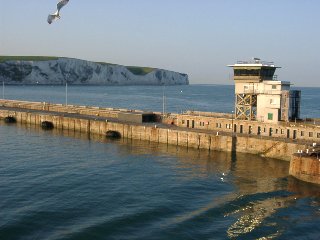 ![]() Ankunft in Dover: Die Kreidefelsen liegen schon im Schatten, ansonsten präsentiert sich das United Kingdom in bester Sommerabend-Stimmung: Kein Wölkchen am Himmel! |