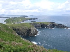 Hier in Irland wollte ich recht schnell den nächsten Campingplatz ansteuern. Das erwies sich dann aber als trickreicher als erwartet: Schmale Straßen, schlechte Beschilderung und das Fehlen einer detaillierten Karte machten die Anfahrt zum Morriscastle-Campground zu einer richtigen Aufgabe. Aber es hat sich gelohnt! Ein ruhiger Platz in toller Lage direkt am Meer, genau das Richtige zum Relaxen und Eingewöhnen. Das Wetter passt: Größtenteils trocken, mäßig warm und immer ein kräftiger Wind. |