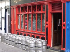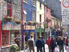 Galway: Keine Stadt von Traurigkeit! Ganz schön was los in der Fußgängerzone, One-Man-Show und: reichlich leere Bierfässer hinter einem Pub. War aber auch Sonntag - und halbwegs schönes Wetter! |