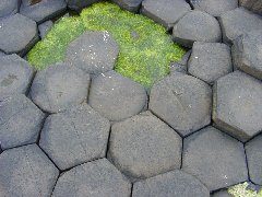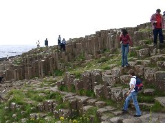 Gleich nach Bushmills kommt eine geologische Ausnahme-Erscheinung: "Giant's Causeway", die "Brücke des Riesen", besteht aus zig-tausenden sechseckiger Lava-Säulen, teilweise wirkt's echt wie gepflastert! |