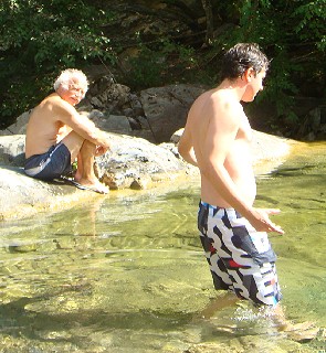 In den Herbstferien 2006 wagten wir es mal, alle 3 Kinder in den VW-Bus zu packen und zu einem Kurzurlaub aufzubrechen. Wie das ausgehen würde, war durchaus ungewiss. "Wir besuchen den Karl", war die Idee, "dem können wir das schon zumuten, der packt das schon!". Karl empfing uns in bester Laune, und seine lockere und lustige Art sprang auch sofort auf die Kinder über. Karls "Abenteuerspielplatz" war dazu noch hochinteressant: Die "Gästevilla" unter den Olivenbäumen, das Trockenklo und die Dusche im Freien, alles nicht übermäßig spießig, einfach "cool". Die Kids waren selten so einträchtig in ihrem Element und blödelten den ganzen Tag, was das Zeug hielt. Es gibt von diesem Trip auch zahlreiche Nonsens-Kurz-Videos, die wir uns immer mal wieder gerne anschauen. Diese paar Tage bei Karl waren spitze, und wir alle haben sie in bester Erinnerung. Fusl |