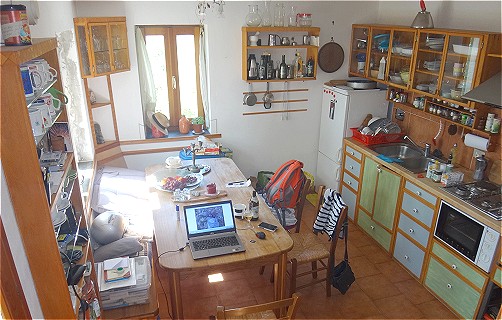 Nach über drei Jahren sind wir jetzt wieder hierher nach Montegrazie gefahren und verbringen ein paar entspannte Tage in Karls Haus, der "Casa Anton". Karl begegnet uns hier natürlich auf Schritt und Tritt, alles trägt seine unverkennbare Handschrift: Das selbst gebaute Mobiliar im ganzen Haus, die umfangreichen Außenanlagen, die Werkstatt, in der noch Materialien für weitere geplante Ausbauten lagern, und auch die Elektroinstallationen, die mir als "Mann vom Fach" besonders ins Auge stechen ... Das Haus macht den Eindruck, als hätte Karl-Anton erst gestern die Tür hinter sich zugezogen. Bruder Miki hält das Haus sehr gut in Schuss, hat alle wichtigen Infos für die Besucher zusammengestellt, verwaltet den Terminkalender und ist auch telefonisch für evtl. Fragen erreichbar. Wir machen uns hier und da etwas nützlich,