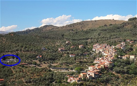 ![]() Der Friedhof liegt ganz links außerhalb vom Dorf Montegrazie |