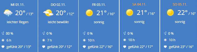 von wetter.com ist erfreulich: weitgehend sonnig bei moderaten 21