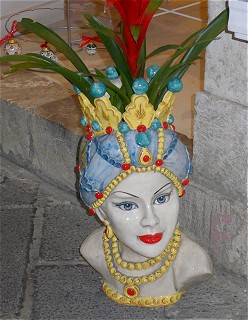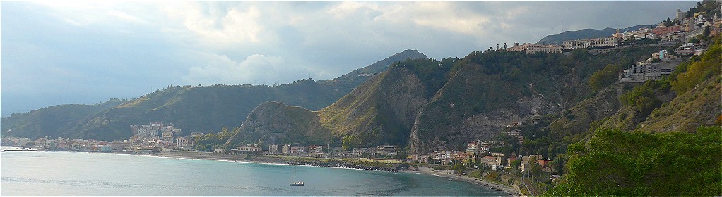Nach Taormina war's dann auch nicht mehr weit. Östlich des Ätna halten sich die Wolken bekanntlich am hartnäckigsten, und so war das auch heute. Sehr erfreulich um diese Jahreszeit: Die relativ geringen Touri-Zahlen. Und so konnten wir uns in Ruhe das Griechische Theater ansehen und auch ohne Gedrängel und Geschubse über den Corso Umberto flanieren. Selbst für manch eingefleischten Sizilien-Kenner eine neue Erfahrung! |